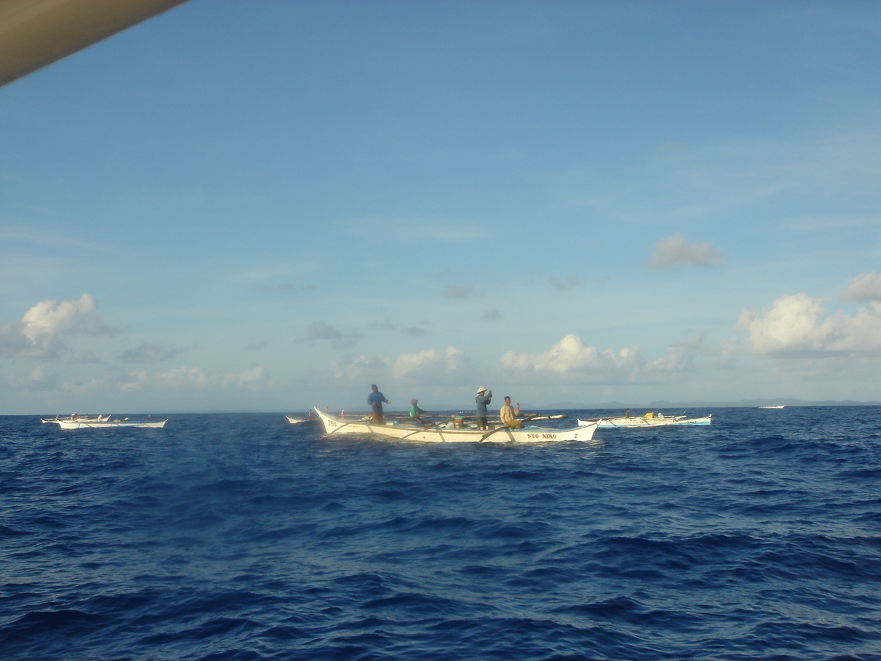 We ventured further to the ocean this time near the payao (a local term for FAD -Fish Attracting Device). It is a blue water artificial reef composed of an anchor, line and coconut leaves just below the water surface. Looks like it's the place to be as we saw a group of boats here.